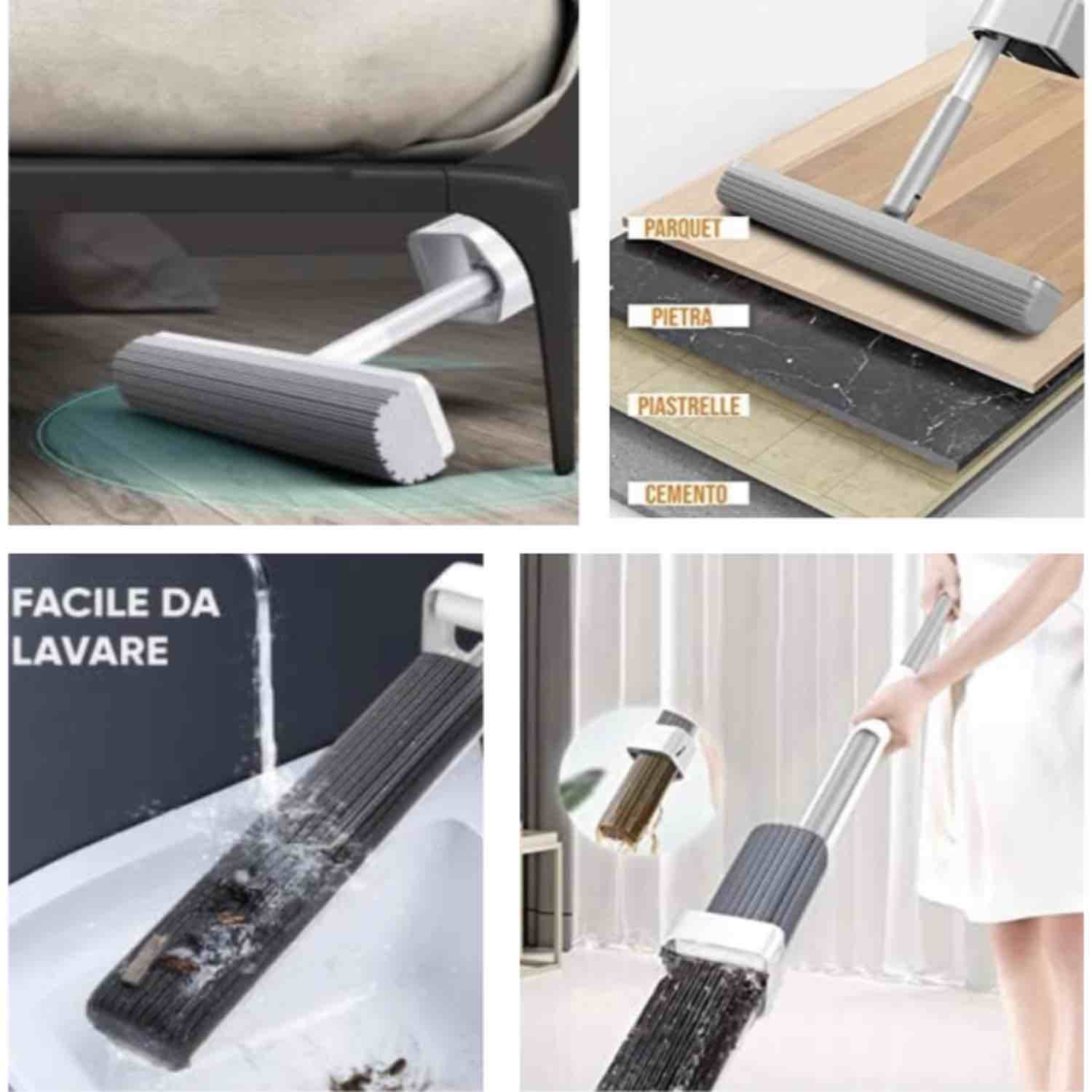 - Risparmia Tempo: Con la Space Mop, la pulizia diventa più veloce ed efficace. Non è più necessario passare da un attrezzo all’altro.